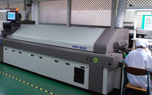 無鉛八溫區(qū)熱風(fēng)回流焊設(shè)備,用于表面貼裝基板的整體焊接,整機(jī)采用計(jì)算機(jī)控制,具有Win2000操作界面和豐富的軟件功能、具有自動傳送的隧道式結(jié)構(gòu),由多預(yù)熱區(qū)、焊接區(qū)、風(fēng)冷區(qū)組成,全熱風(fēng)加熱方式,上、下溫區(qū)獨(dú)立熱源,各加熱區(qū)單獨(dú)PID控溫,具有通訊控制的無級調(diào)速功能。